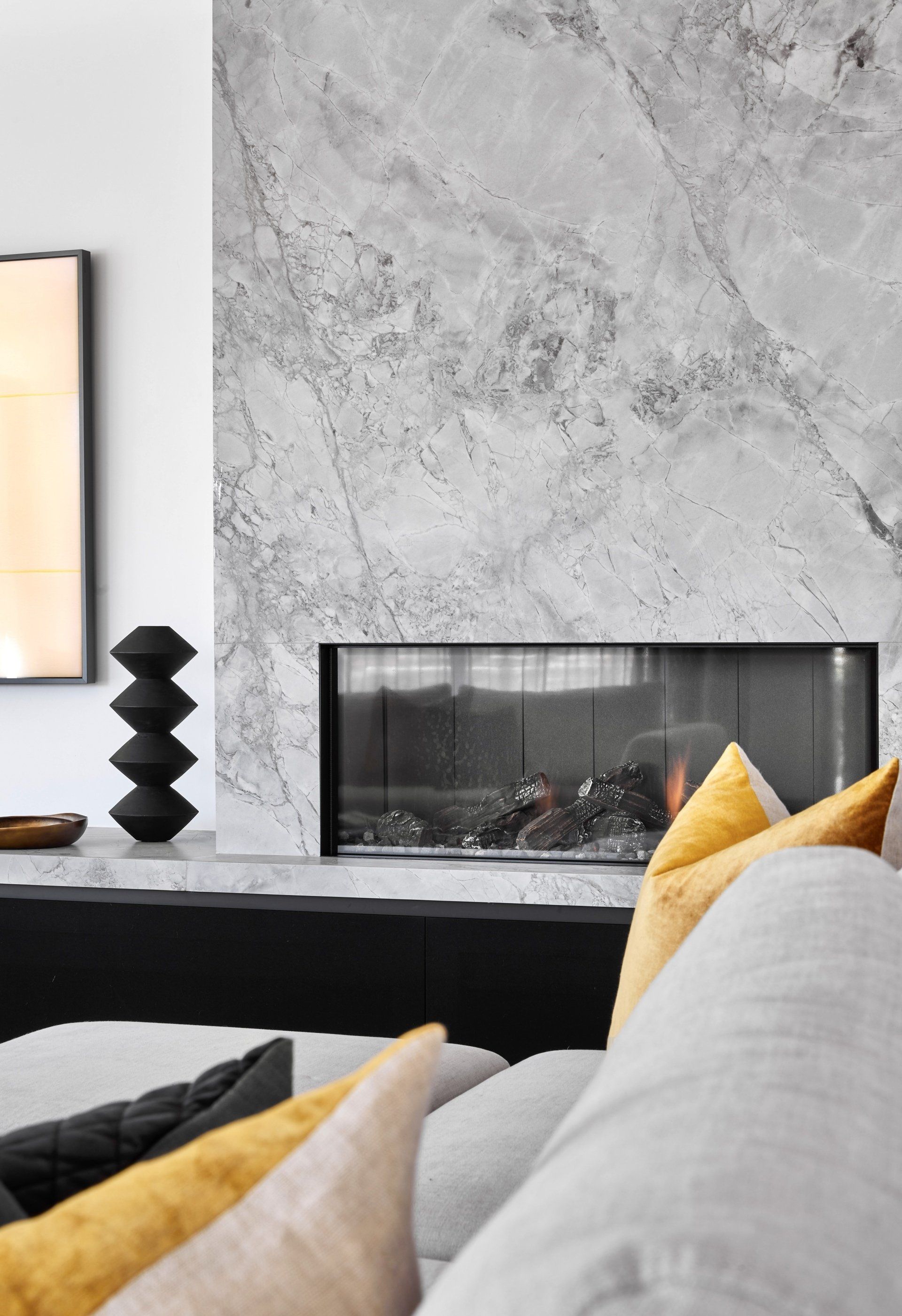 - The new fireplace in the living room provides a focal point.