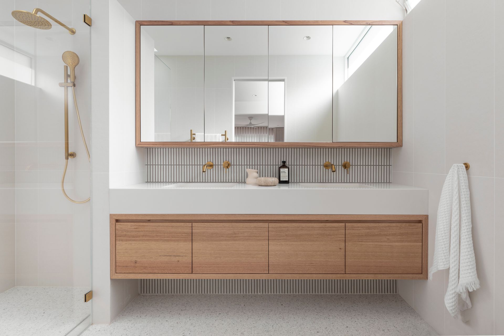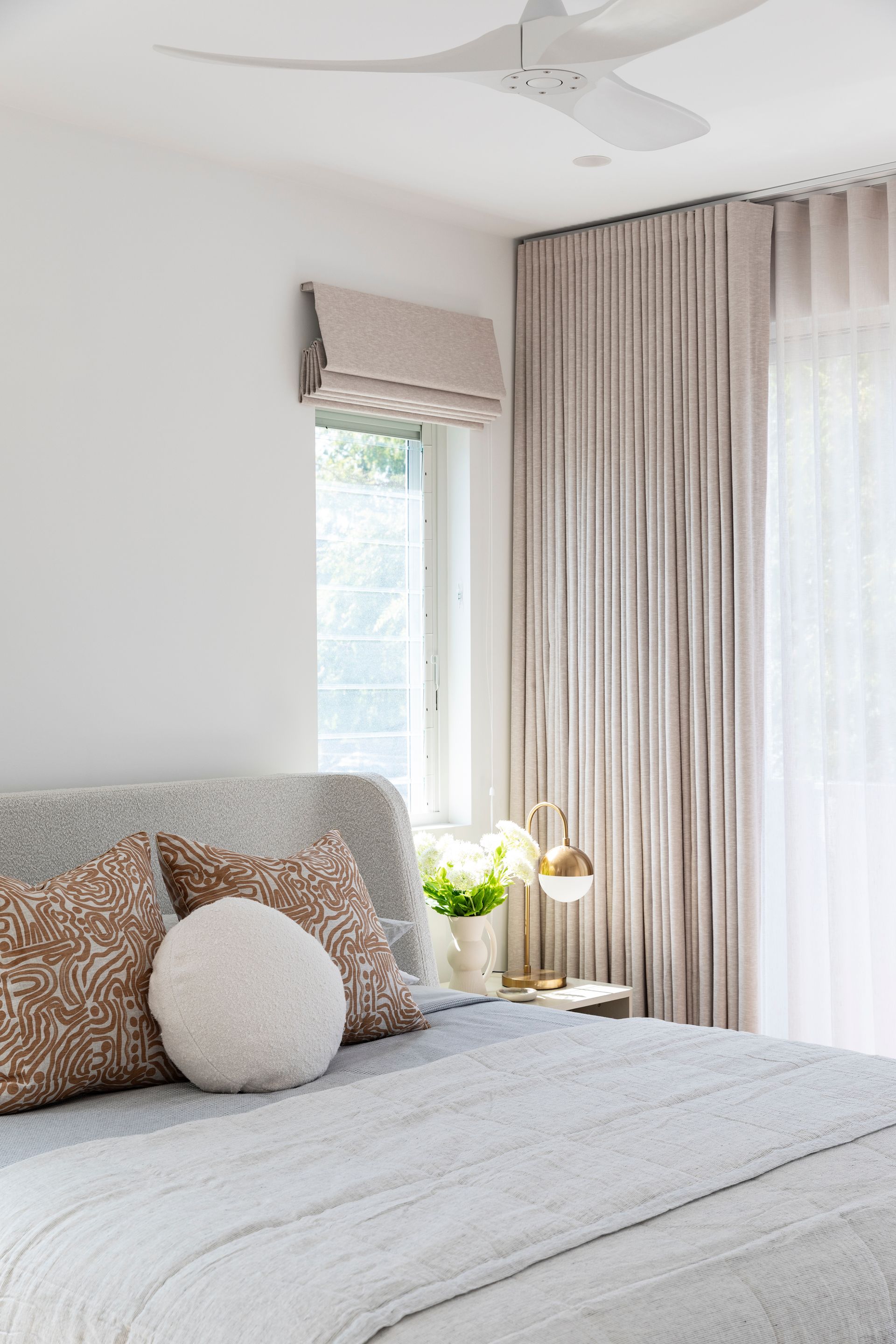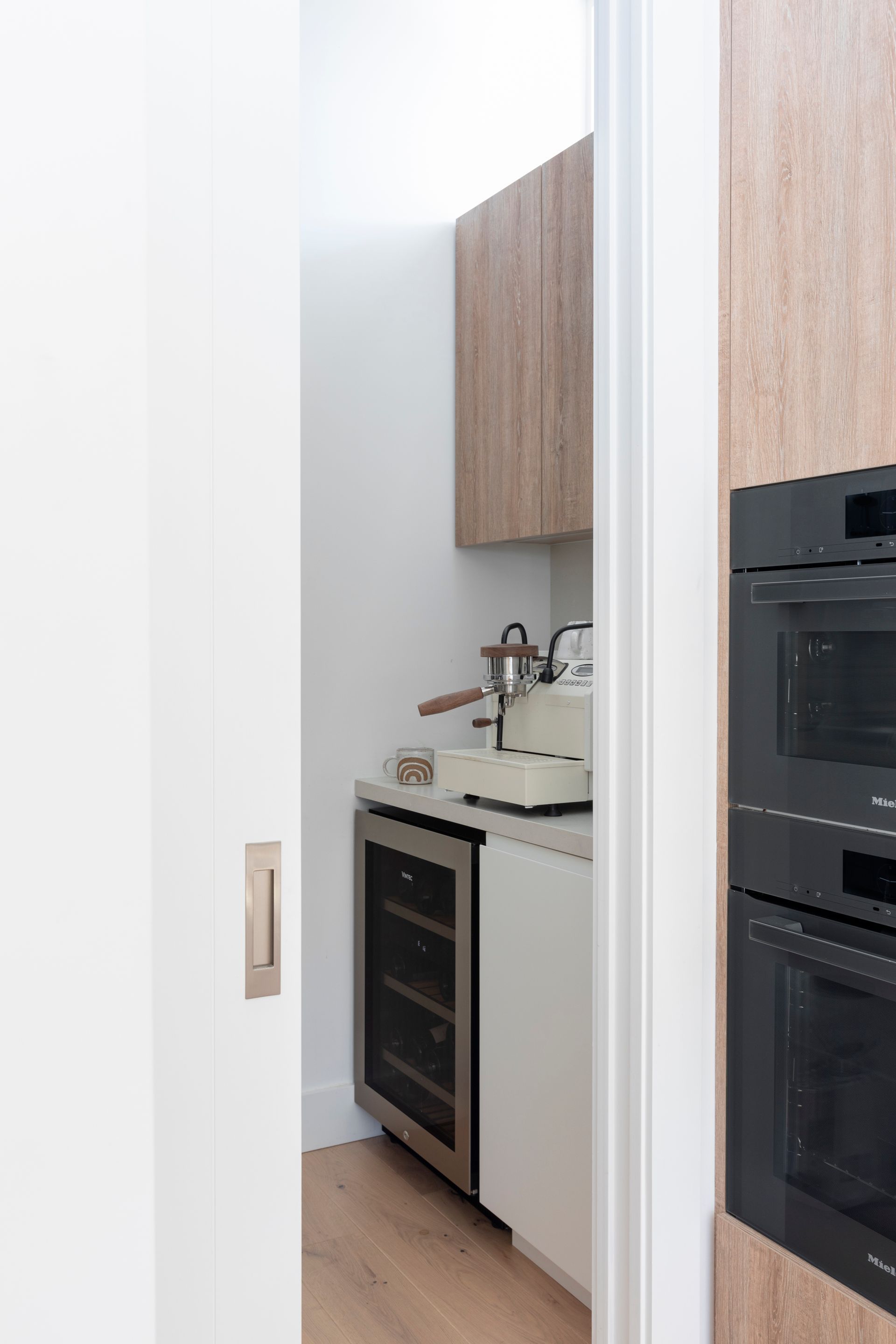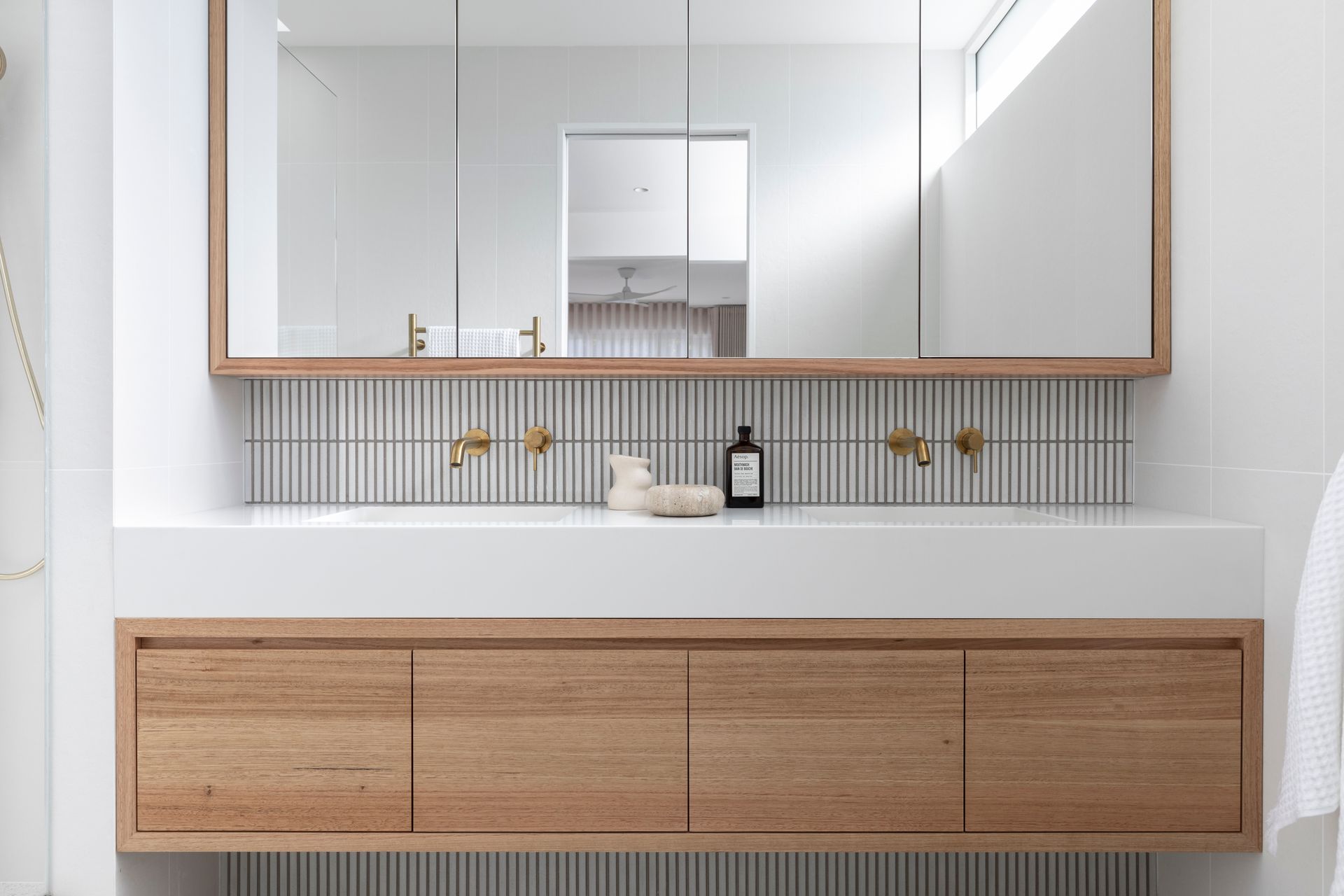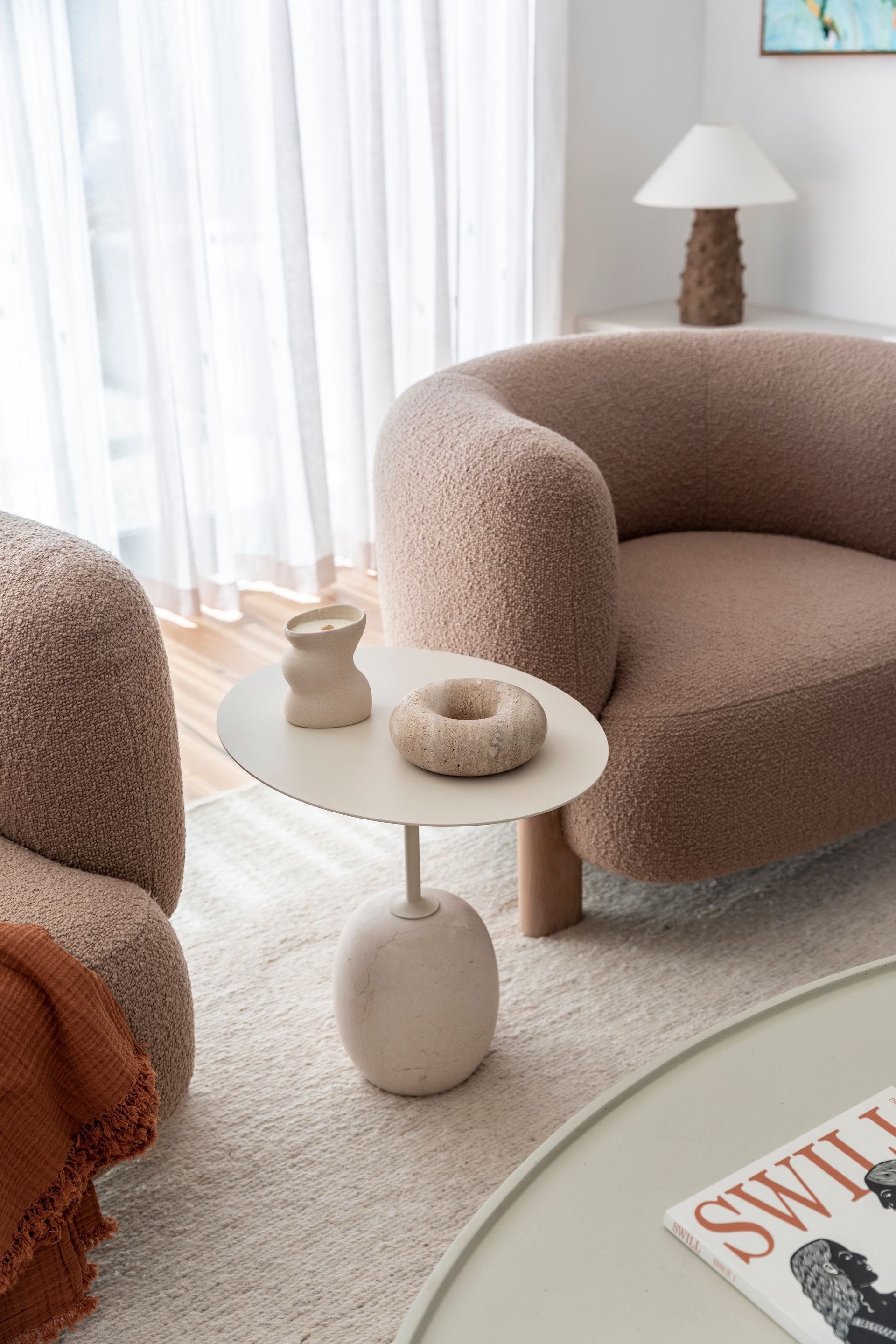 The interiors feature nature-inspired neutral tones, textural tiles, and soft timber accents. Carefully curated furniture and décor complement the overall aesthetic and material selections, and the palette harmoniously carries through to the exterior, extending the sense of overall living space.