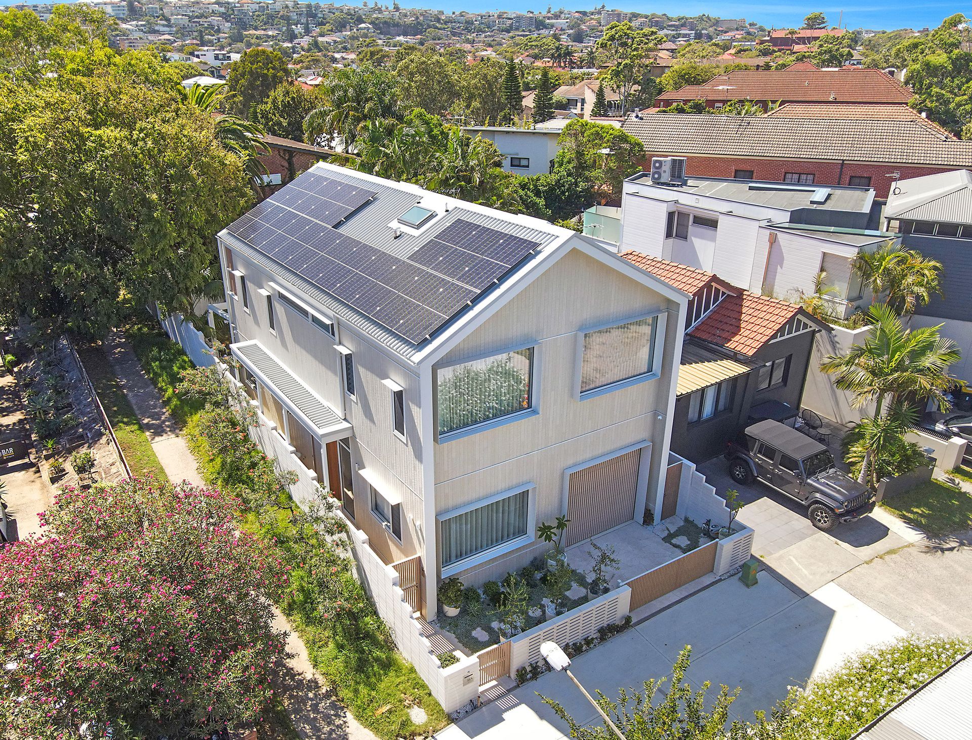 The home and electric vehicle are solar powered, minimising environmental impact. Home automation streamlines lighting, temperature, and security control. Robust insulation included in the floors, roof, internal and external walls, optimises acoustic and thermal comfort.